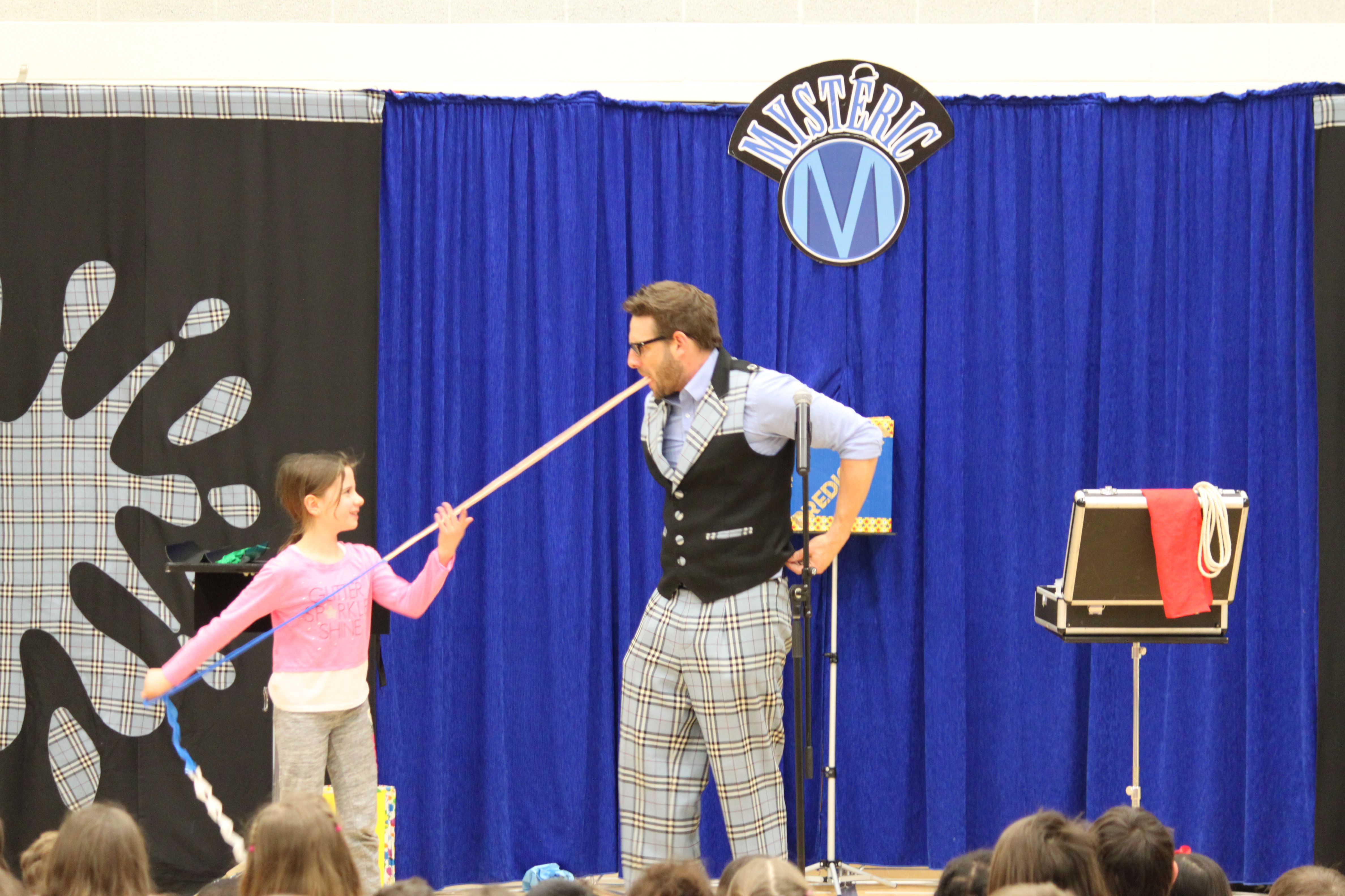 À l’école La Mission, les élèves et les membres du personnel célèbrent avec fierté la semaine de la francophonie. Nous avons débuté la semaine avec le lever du drapeau franco-albertain. Les élèves se sont réunis dehors autour du mat de l’école. Après le discours de Mme Irène Alto, présidente de l’ACFA Centralta, les élèves ont chanté le premier hymne national de la nouvelle France : À la claire fontaine et deux élèves de la 6e année ont hissé le drapeau bleu, blanc et rose dans le ciel de Saint- Albert. Nous avons eu un spectacle incroyable du magicien Éric Leclerc qui nous a coupé le souffle avec ses trucs et a su nous faire rire aux éclats. Du plus, tous les matins les élèves se creusent les méninges en cherchant des mots en jouant à charivari et scattergories.