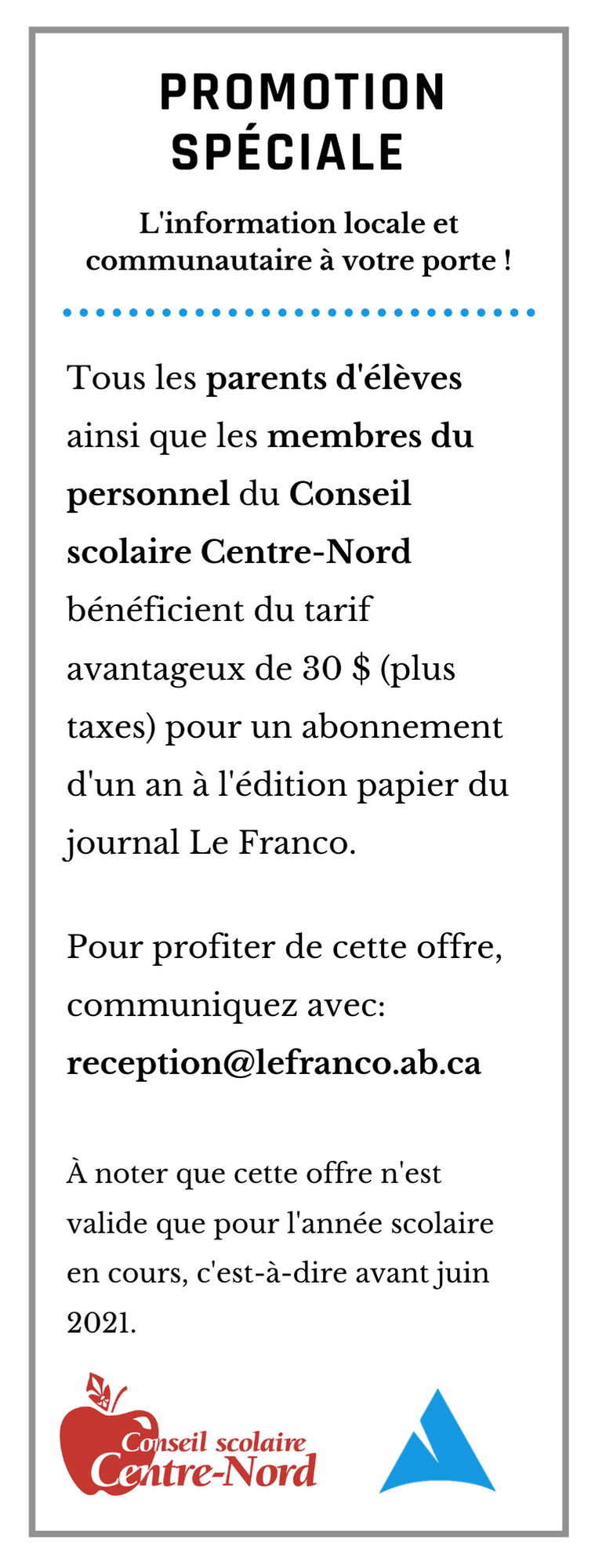 Profitez de l’information locale et communautaire livré directement chez vous grâce au tarif avantageux de 30 $ pour un abonnement d’un an au journal Le Franco.