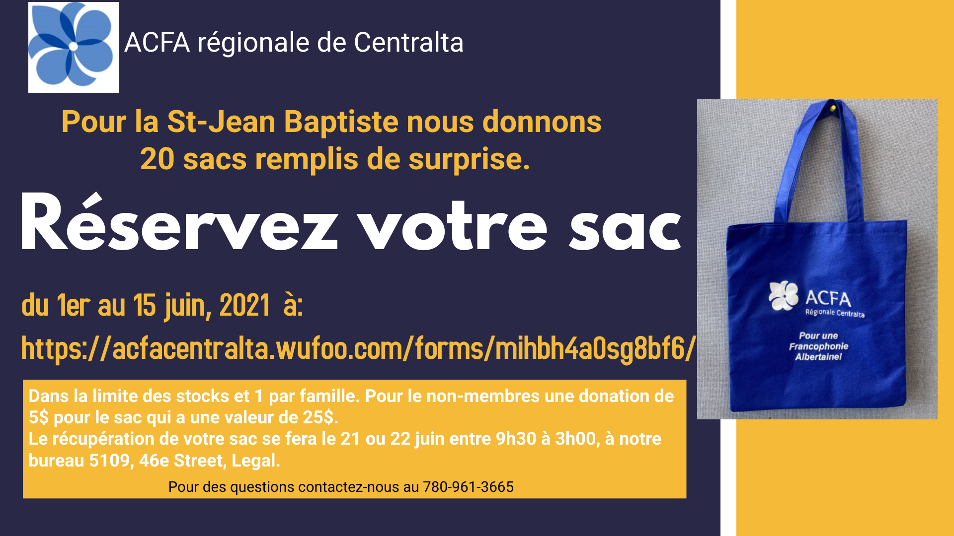 Pour la St-Jean Baptiste nous donnons 20 sacs remplis de surprises.