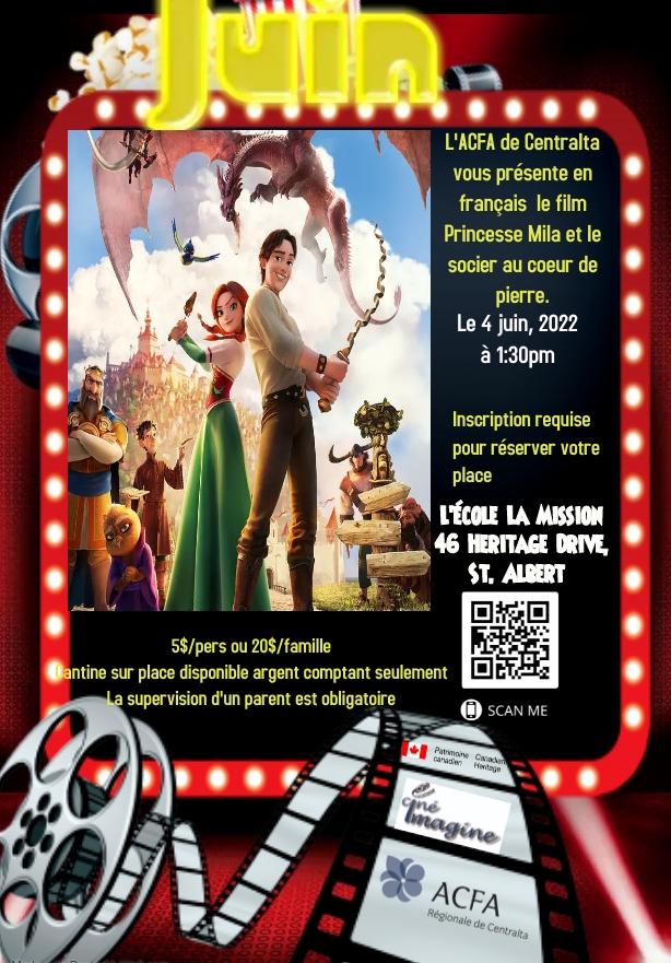 Le conseil d’école en lien avec l’ACFA Centralta offre une session de premiers soins pour tous les parents de l’école La Mission ainsi qu’un après-midi de cinéma pour visionner en français le film Princesses Mila et le sorcier au cœur de pierre.