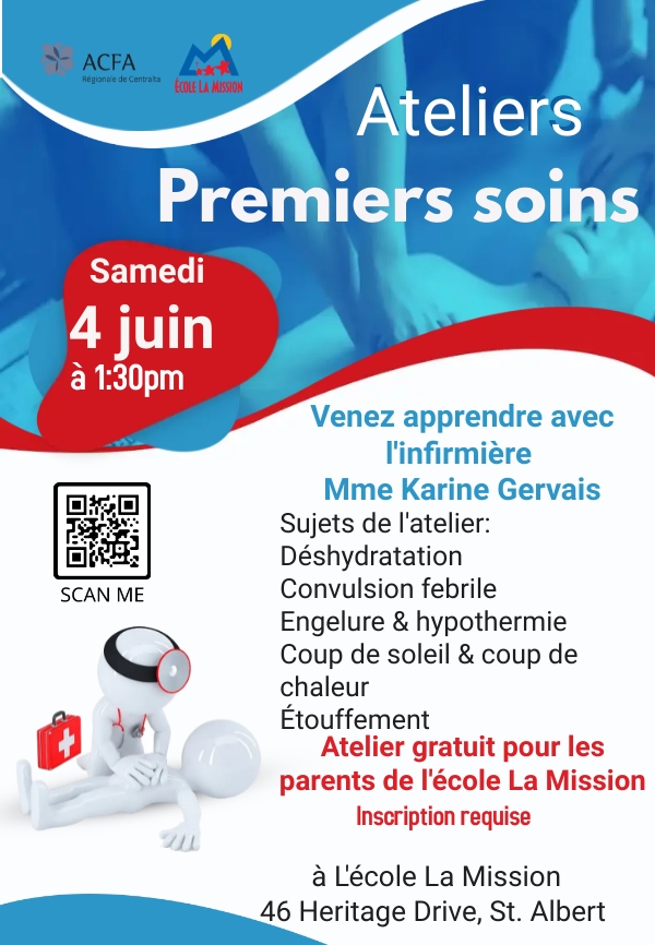 - 13 h 30 Ateliers de premiers soins GRATUITS pour les parents de l’école La Mission