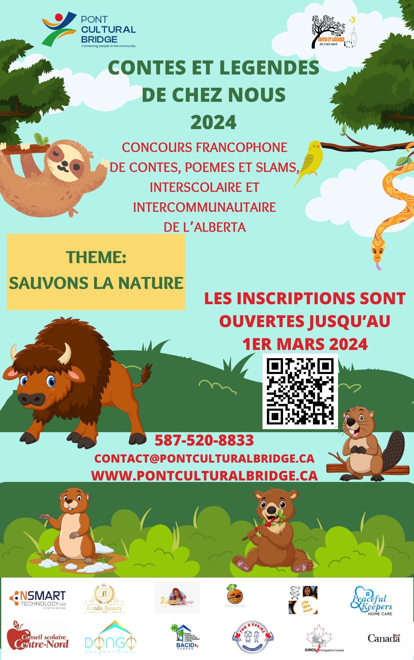 Le Pont Cultural Bridge a le plaisir de vous annoncer l’ouverture des inscriptions gratuites à la 6e Édition du Concours Francophones de Contes, Poèmes et Slams interscolaire et intercommunautaire de l’Alberta : Contes et légendes de chez nous 2024