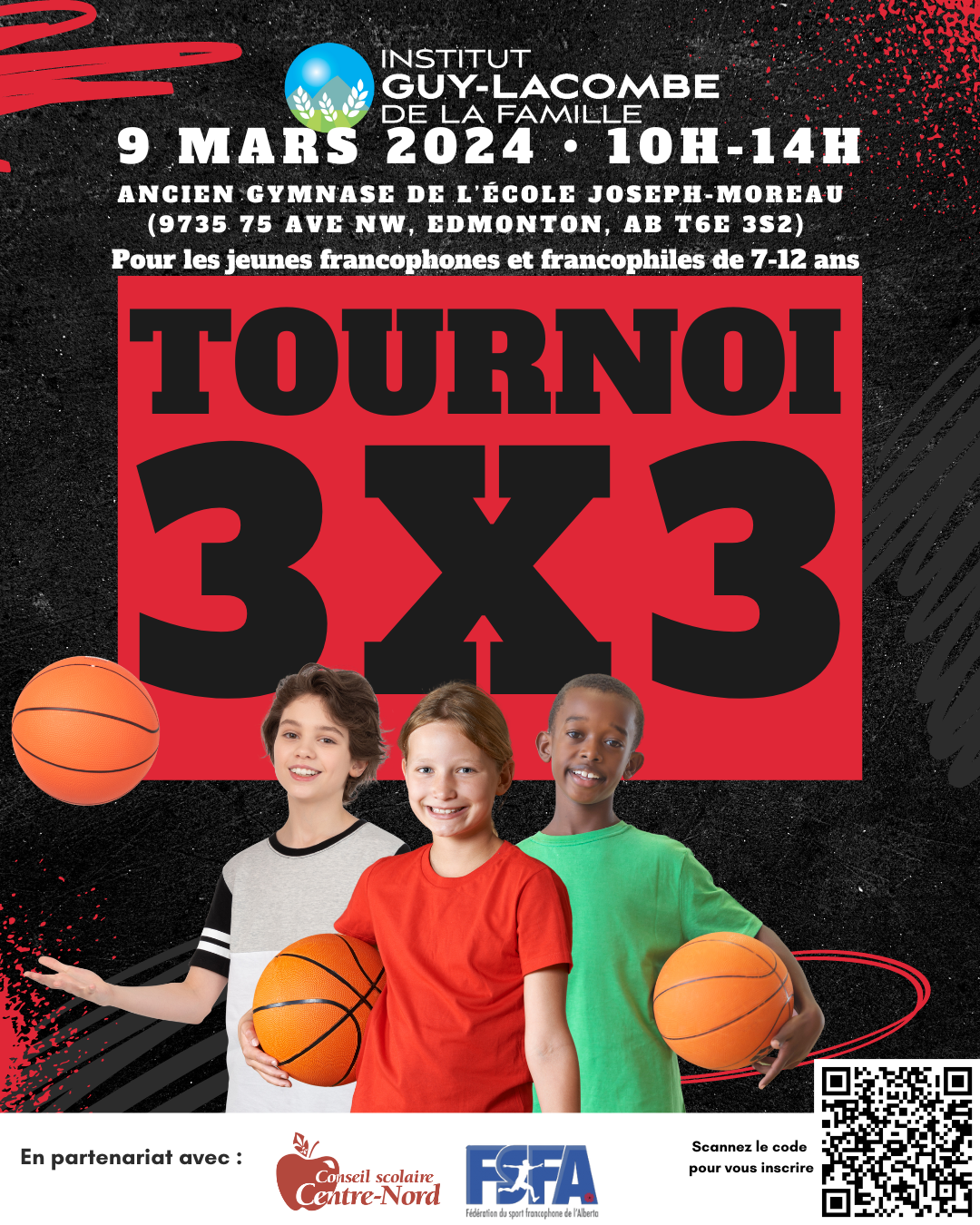 L’IGLF organise son 1er tournoi communautaire basketball 3x3 pour les enfants de 7 à 12 ans. L'activité aura lieu à l'école Joseph-Moreau le samedi 9 mars prochain. Une belle activité pour faire du sport et s'amuser en français!